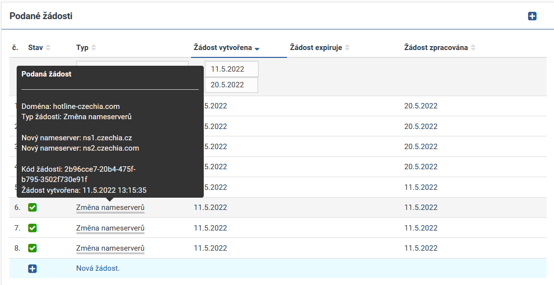 Celkový přehled změn včetně jejich detailu naleznete v sekci Podané žádosti.