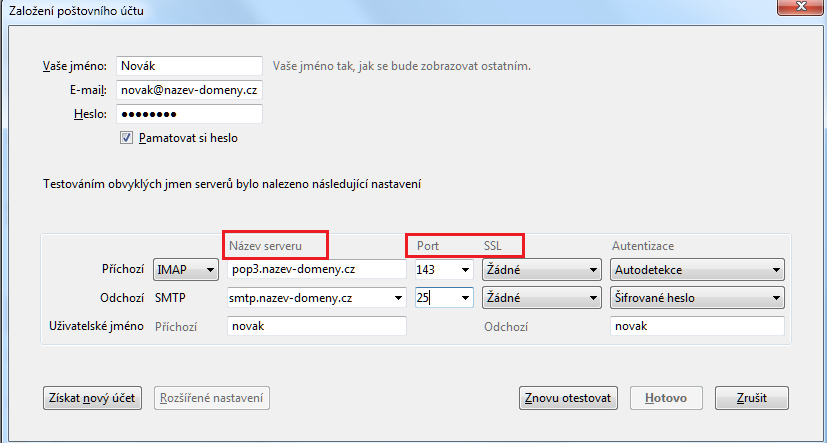 Nastaveni poštovních klientů