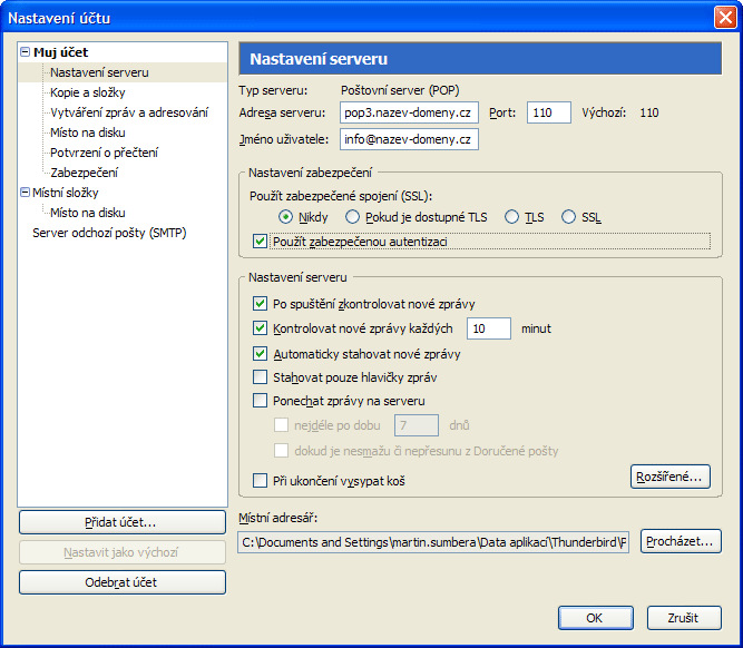 Nastaveni poštovních klientů